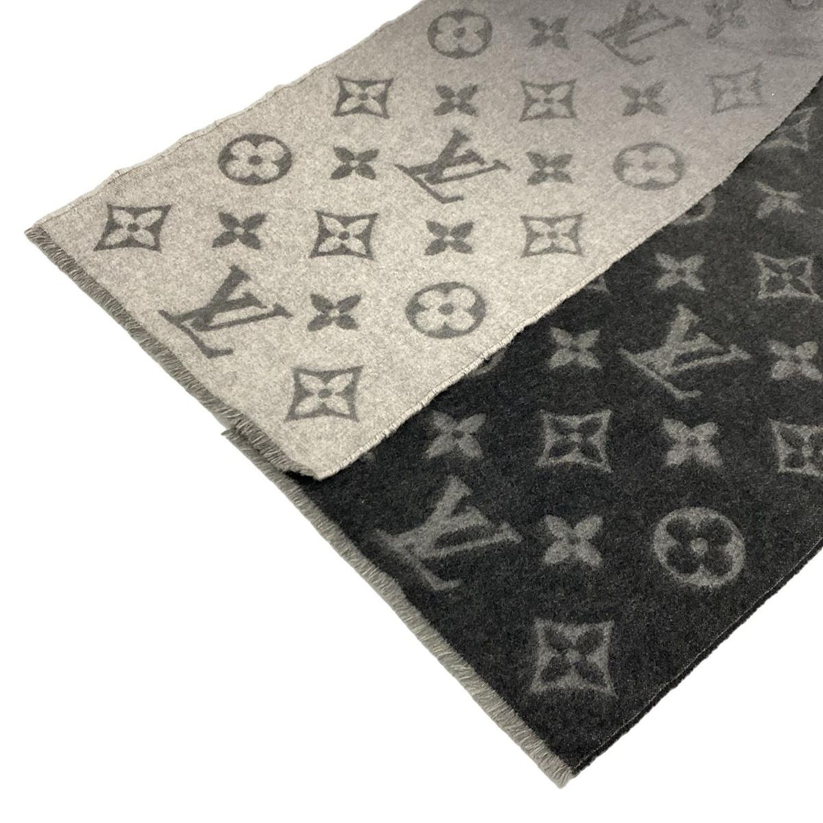 LOUIS VUITTON ルイヴィトン マフラー エシャルプ モノグラム ドーン トゥ ダスク M 76827 グレー×ダークグレー カシミヤ