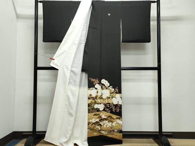 平和屋着物 豪華黒留袖 刺繍 渡り橋草花文 金彩 高島屋扱い 正絹 vf