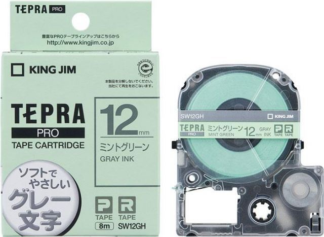 まとめ キングジム ラベル ソフト ミントグリーン グレー文字 PROテープ SW 12 GH