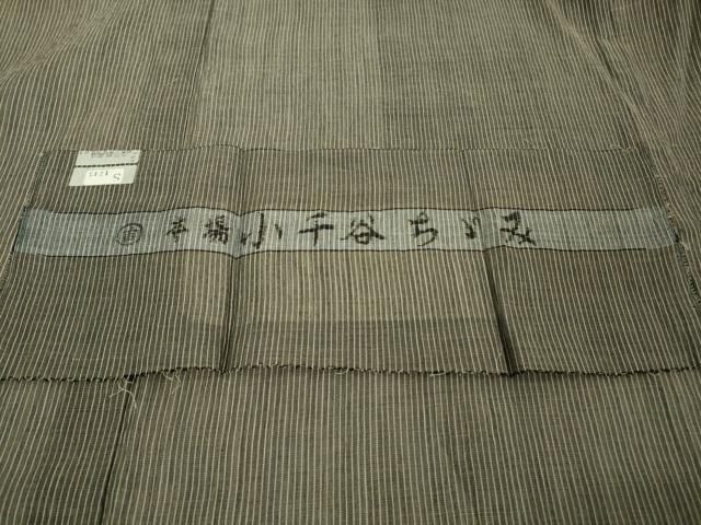 平和屋着物 上 夏物 男性 本場小千谷ちぢみ 麻 縞 江戸鼠色×白 吉新織物謹製 証紙付き kh 5