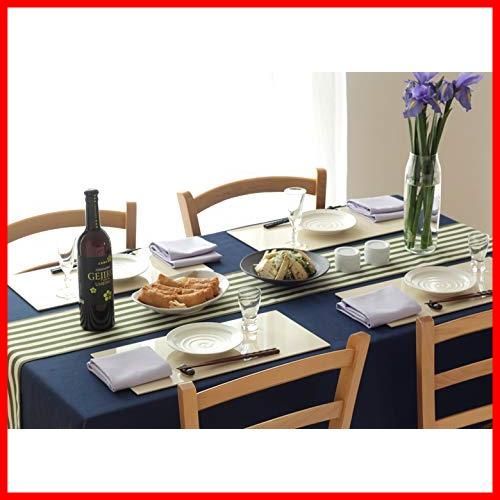 【高品質テーブルクロス】テーブルクロスのための生地を糸から織っているオリジナルの日本製テーブルクロスです。ナチュラル感のある天然素材の綿と洗濯をした時にシワになりにくいポリエステルの混紡糸を使用しております。麻のような風合いを出すためにところどころ太さの違う糸を作って織り上げました。