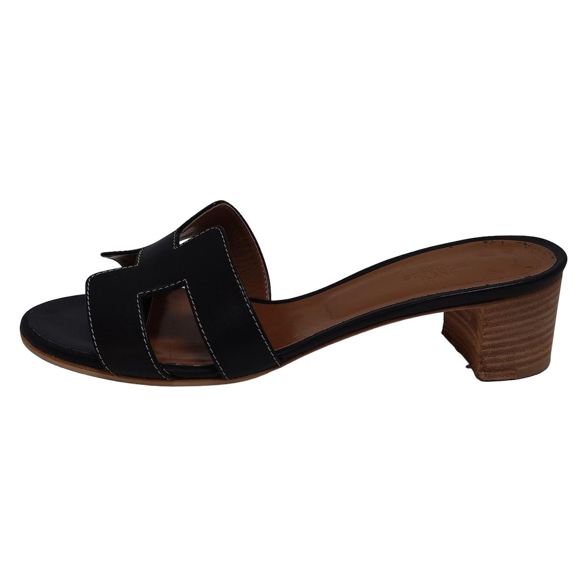 HERMES エルメス ミュール 38 レディース オアジス 黒 アウトソール張替済 レザー
