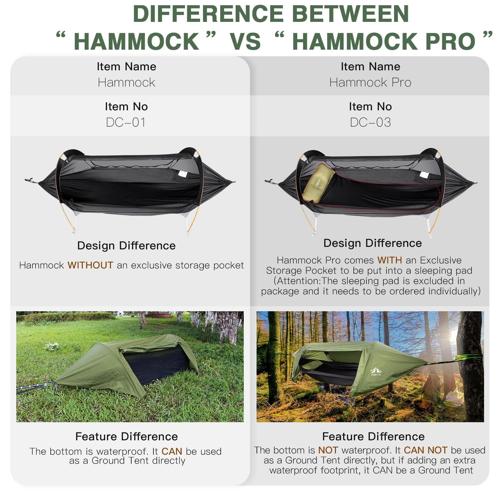 庭 ハイキング アウトドア 耐荷重201 kg 2人用 1 耐水圧PU 4000 mm レジャー 通気 虫対策 簡単設営 軽量 キャンプ フライシート付き 蚊帳付き テント 防水ハンモック Cat Night