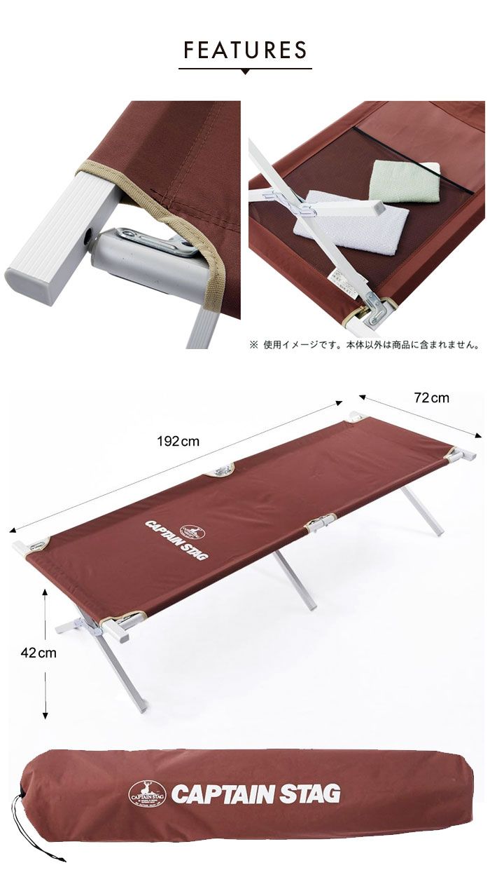 キャンプ ベッド 折りたたみ アルミ 収納バッグ付き 幅72 奥行192 高さ42 キャンピングベッド 簡易ベッド アウトドア コット キャンプコット ベンチ イス フォールディング ベランピング 軽量 コンパクト 折り畳み