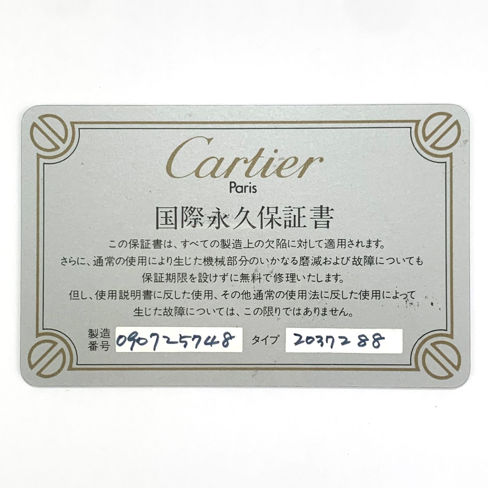 ギャランティカード 修理証明書