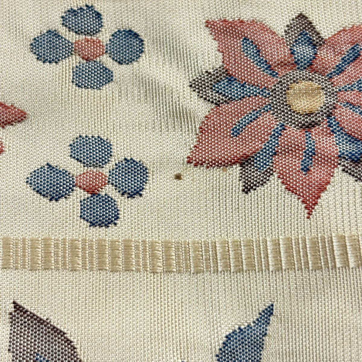 半幅帯 秀品 証紙 本場博多織 花唐草 ベージュ 正絹