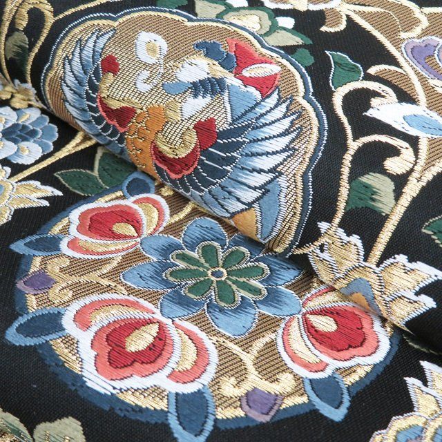 袋帯 正絹 フォーマル 仕立て上がり 六通 花鳥模様 花紋 華文 箔糸 黒色 多色 金 きもの北條 A 1286-14