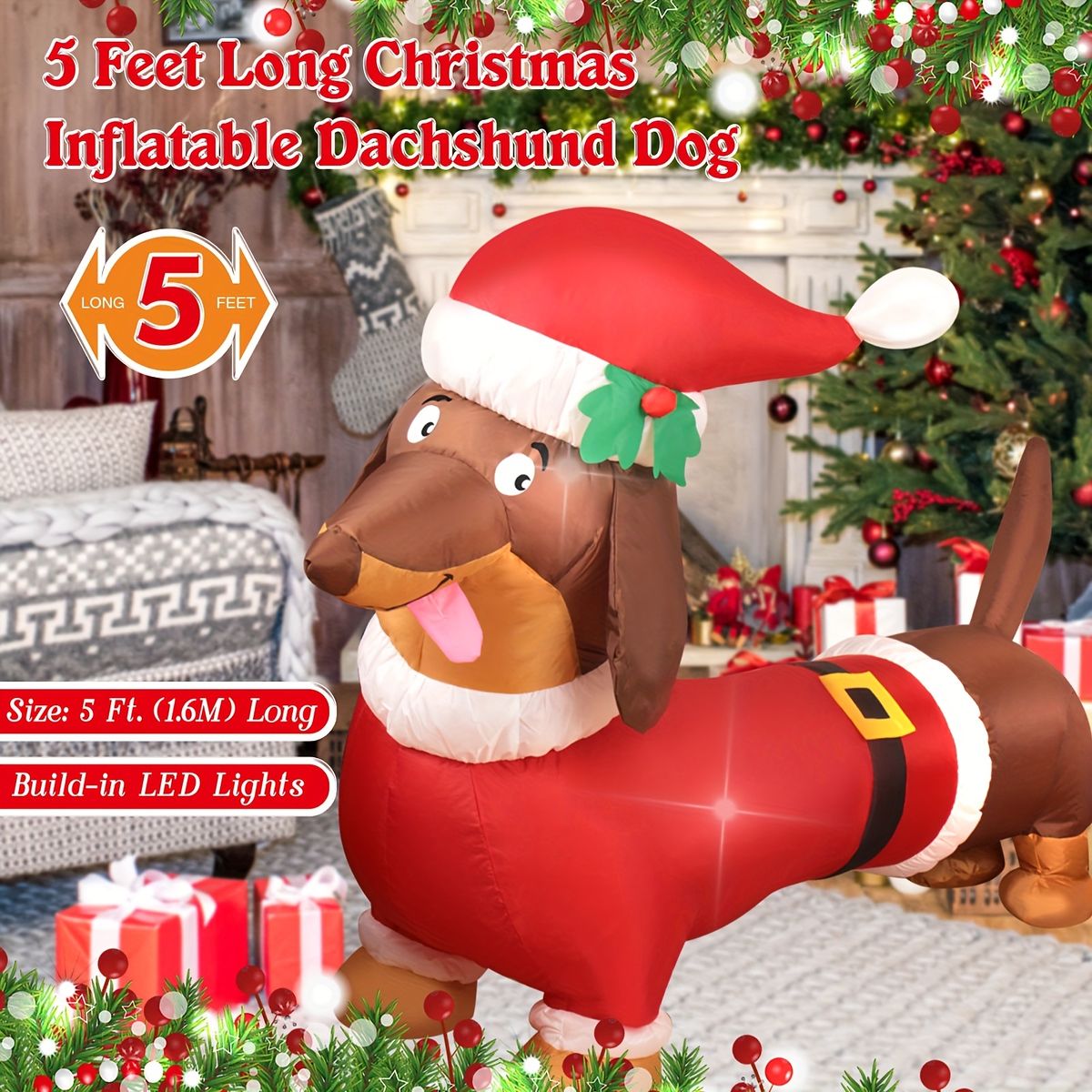WAYDEKO ジンジャーブレッドマン インフレータブル 5フィート 庭 屋外用 LEDライト IPX 4防水 屋内ホリデーデコレーション 設置簡単 のダックスフント犬