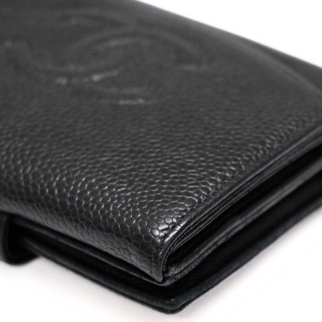 シャネル CHANEL ココマーク Wホック 三つ折り 財布 ウォレット キャビア 黒 10番台【71929】
