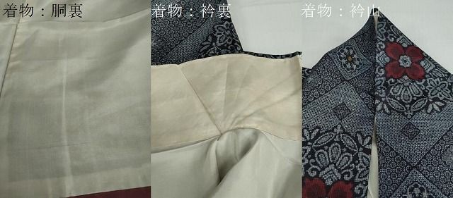 着物の状態は接写画像のように胴裏・衿裏・衿山に薄い汚れがございますが