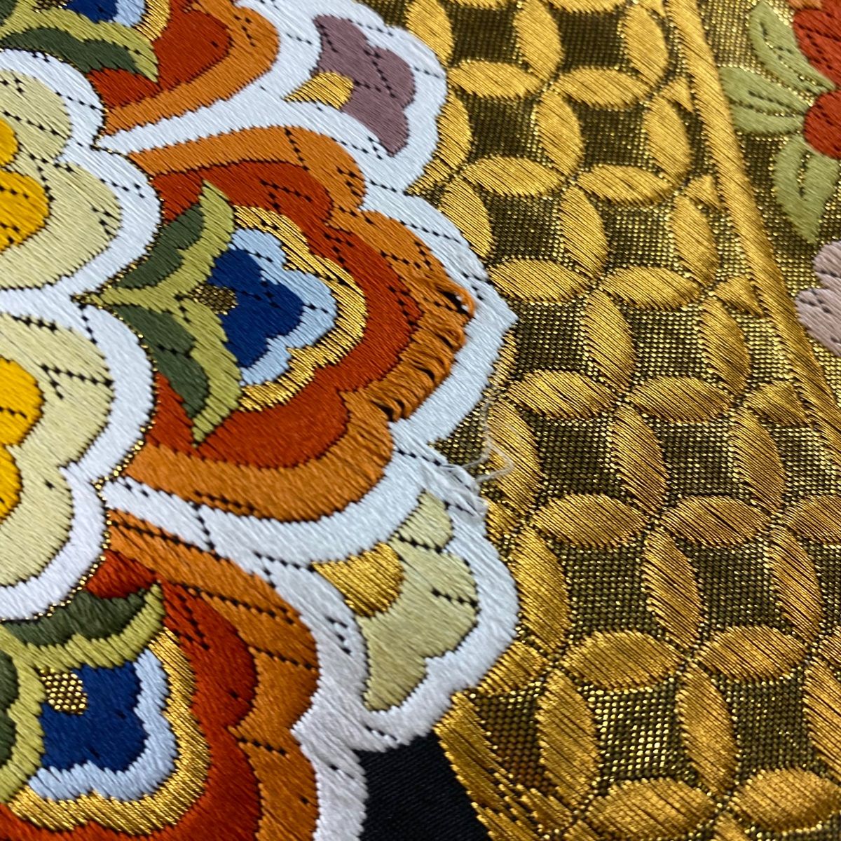 柄止まり付近に唐織の糸ゆるみがございます。