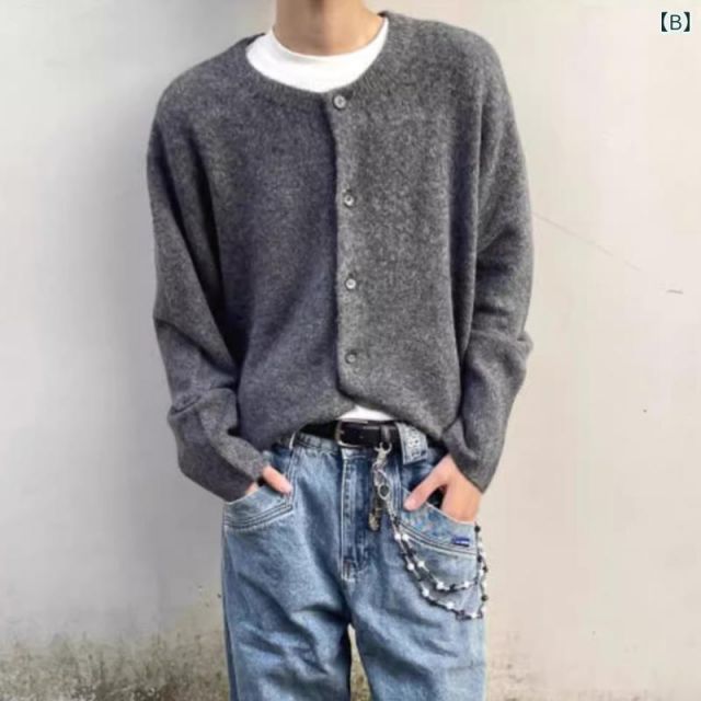 秋冬 コーデ メンズ 服 シンプル ファッション オシャレ 大人 かっこいい 大きいサイズ ストリート 紳士服 アメリカン ハイエンド カーディガン セーター カジュアル ラウンドネック カップル ウェア コート