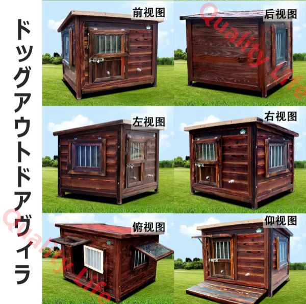 犬小屋 屋外用 無垢材 木製 犬舎 中型犬 大型犬 超大型犬 ドア付き 大型屋外犬小屋 犬用ハウス 引き出し式底板 通気性 暖かい 全天候型 日焼け対策 防風 雨除け 耐炭酸化と腐敗 安定性と耐久性 組立簡単 水洗い L