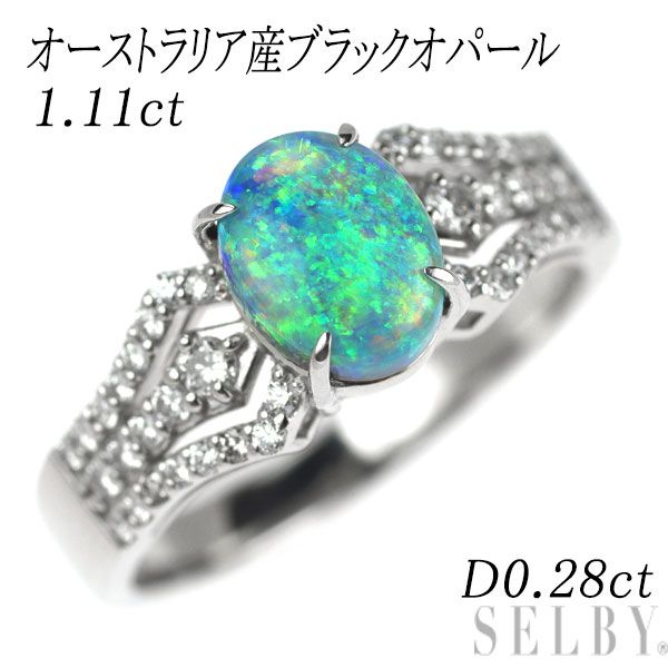 Pt 950 オーストラリア産ブラック オパール ダイヤモンド リング 1.11 ct D 0.28 エスコレ