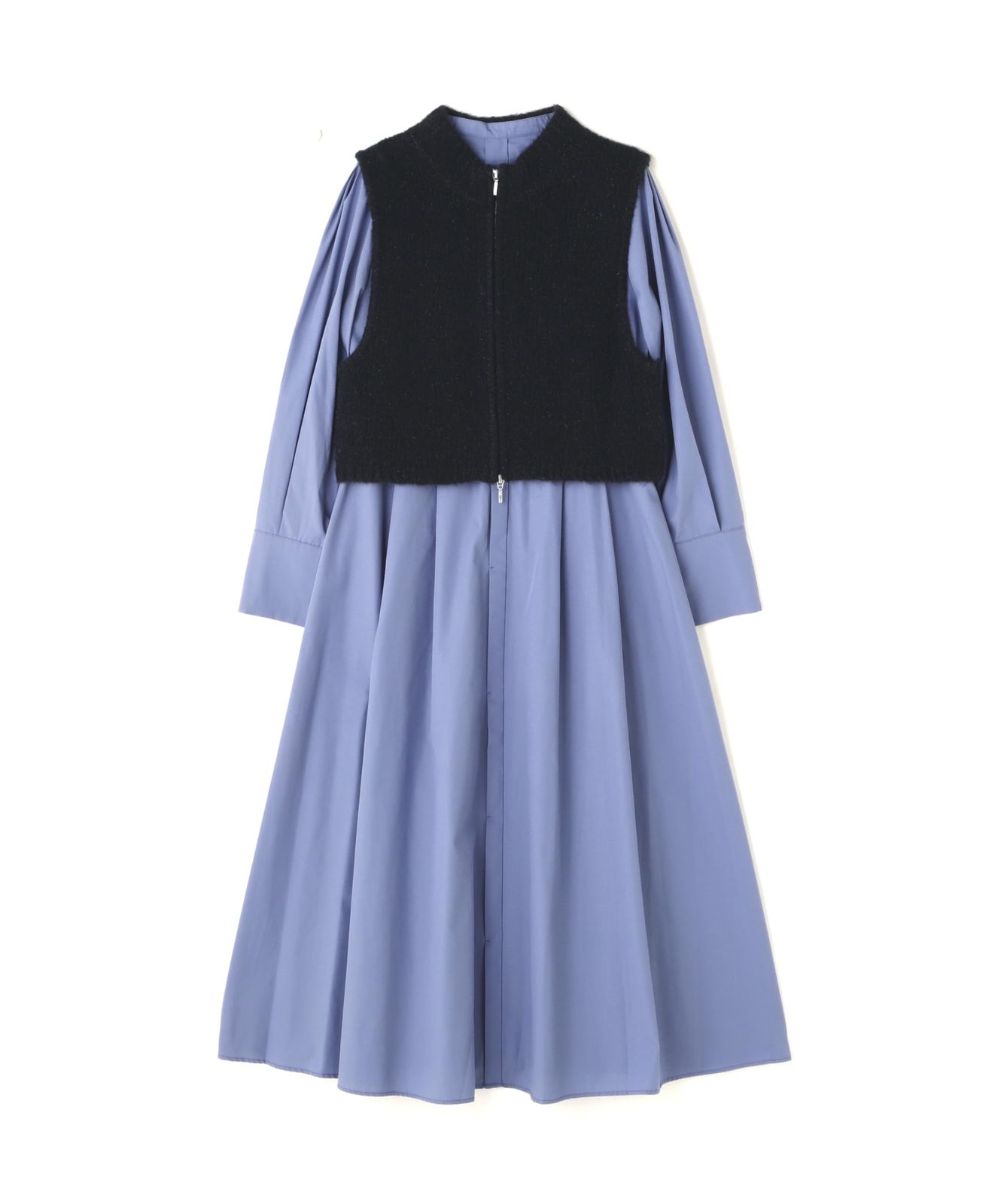 ナチュラルビューティーベーシック カジュアルドレス ラメニットベスト&シャツワンピース レディース ネイビー×ブルー