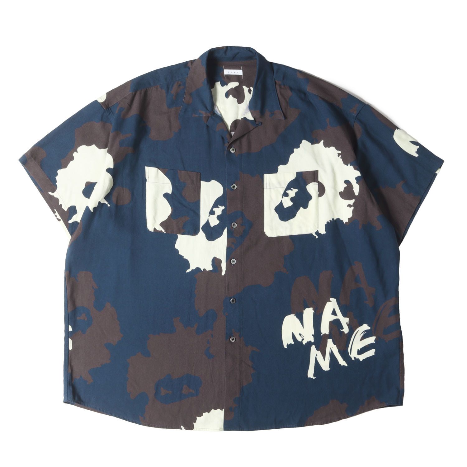 Name. ネーム シャツ ブルー チャコール サイズ 2 | カモフラージュ オーバーサイズ レーヨン 半袖シャツ トップス 総柄 迷彩 半袖 ショート ハーフ スリーブ メンズ