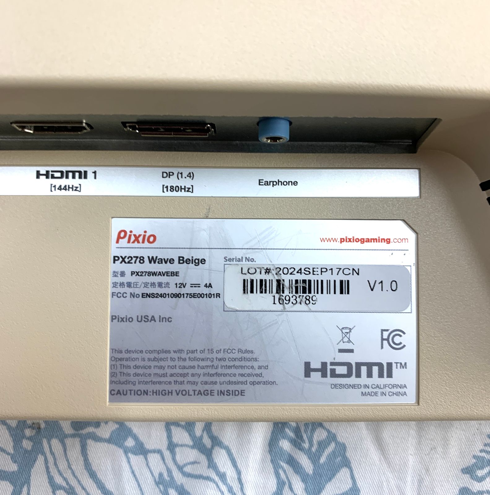 【商品名】 Pixio PX278 WAVEBE ゲーミングモニター 27インチ 180Hz WQHD ベージュ